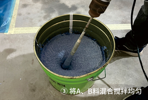 1、 A、B組分按1:1比例進行配置,電動攪拌均勻后使用,可采取噴涂 或批刮工藝進行施工。材料表干后表面美觀不起粉,具有彈性,符合交付 的質量標準;
